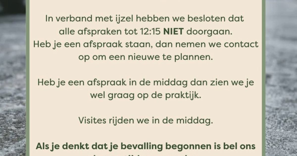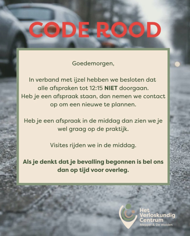 4 februari 2026 Ochtend spreekuur afgelast ivm code rood door ijzel